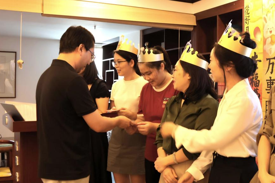 随后,董总为寿星们送上了美好的生日祝贺!董总祝愿各位生日快乐、身体健康,也希望在未来的日子里,继续保持积极向上的心态,创造更多精彩!董总的话语亲切有力,让在场的大家倍受鼓舞!